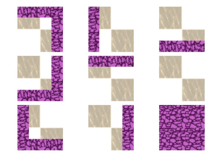 Die eingegebene Textreihe wird eingelesen, jede "O" wird als eine Kachel in die Bilddatei ersetzt, das ein Spielfeld bildet.