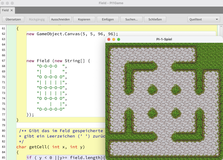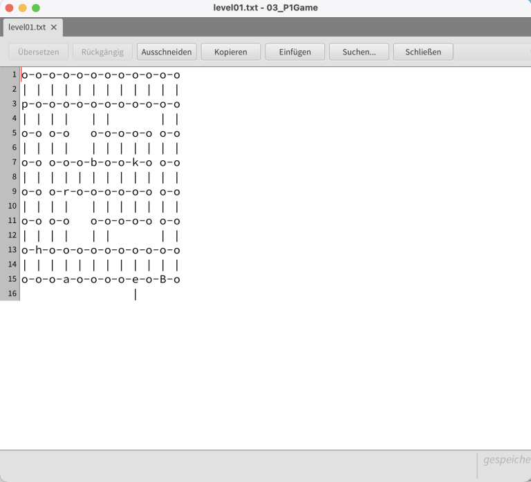 In weitere Schritten wird das Spielfeld aus einer externen Textdatei eingelesen und in Spielfeld, Figuren und Items umgewandelt.