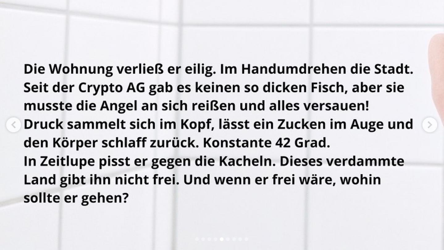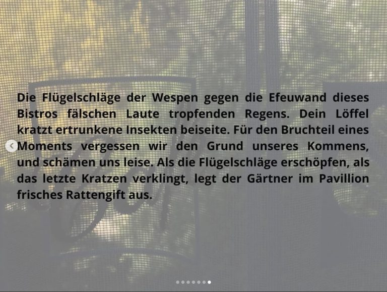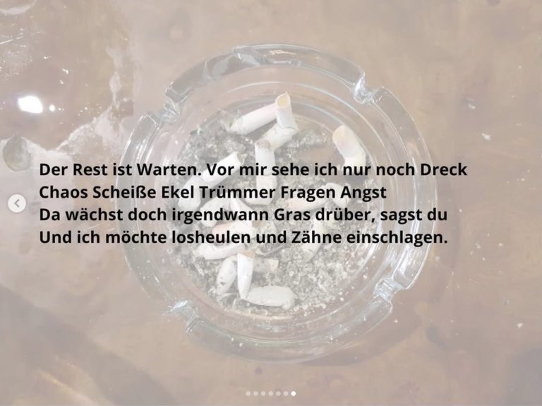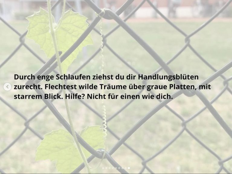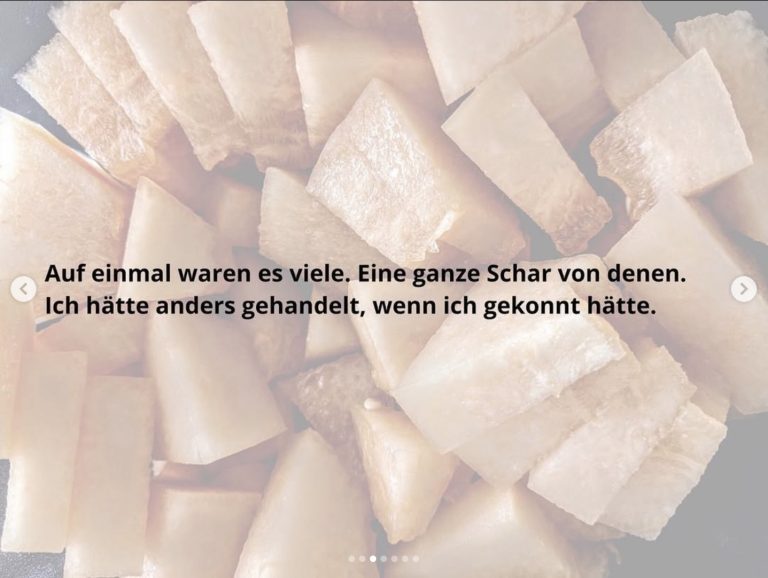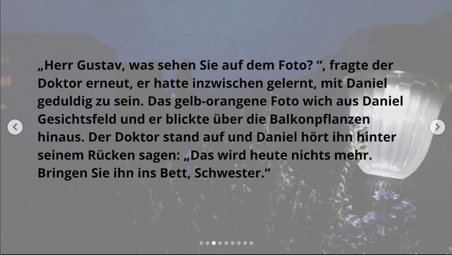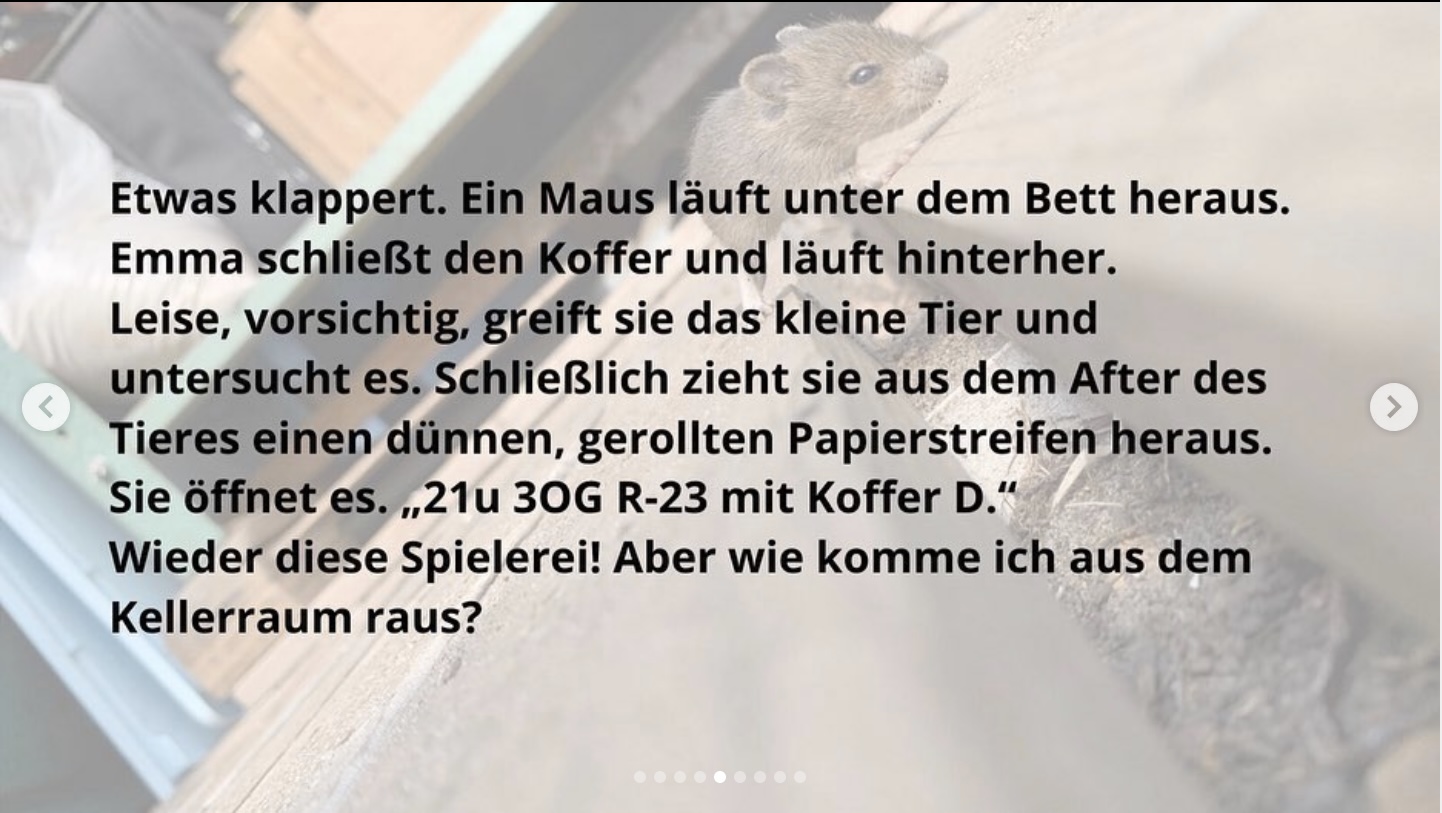 Jeden Abend teilt eine*r ein Foto, dazu erfindet der/die Nächste eine Geschichte, und macht ein neues Foto, das die Geschichte am Laufen hält.