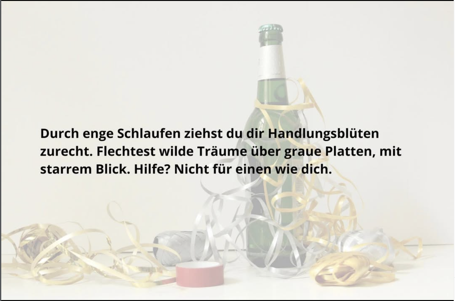 1. Die Szene muss irgendwo in den eigenen vier Wänden gespielt werden.