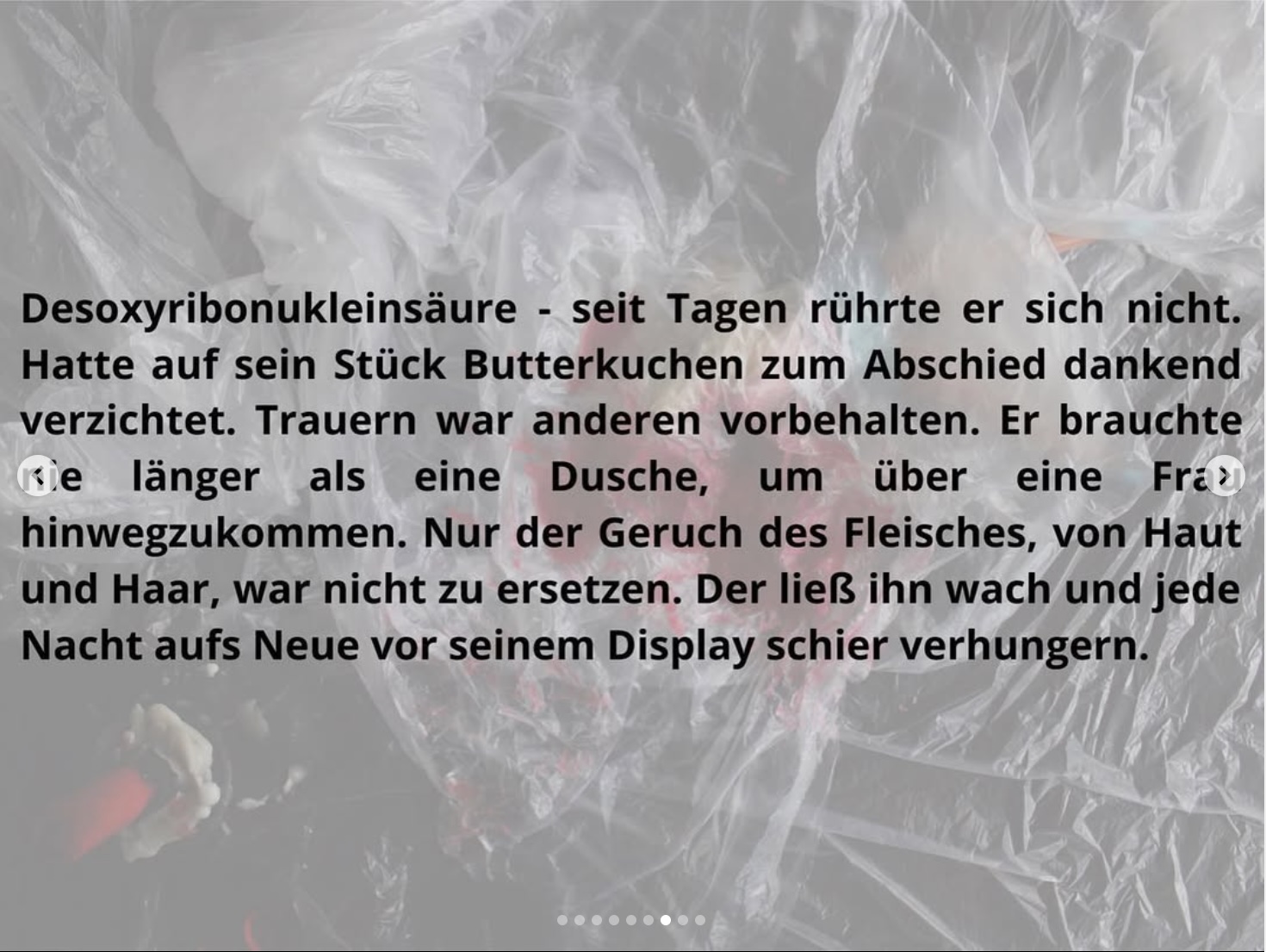 Machen wir ein Foto. Fangen wir an, alltägliche Gegenstände zu beobachten. Und schreiben wir ihnen gemeinsam eine Geschichte zu. So entstand unsere kleine Erzählungsserie. Jede*r hinterlässt ein offenes Kapitel für morgen, damit wir noch einen Tag überleben - bis wir wieder ins Theater zurückkehren können.